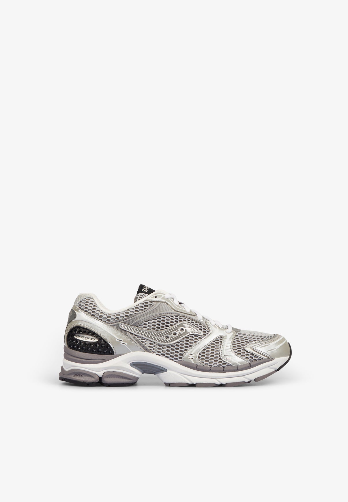 Saucony sneakers made of mesh and synthetic leather with cushioning and a secure fit. Lace-up closure.