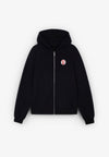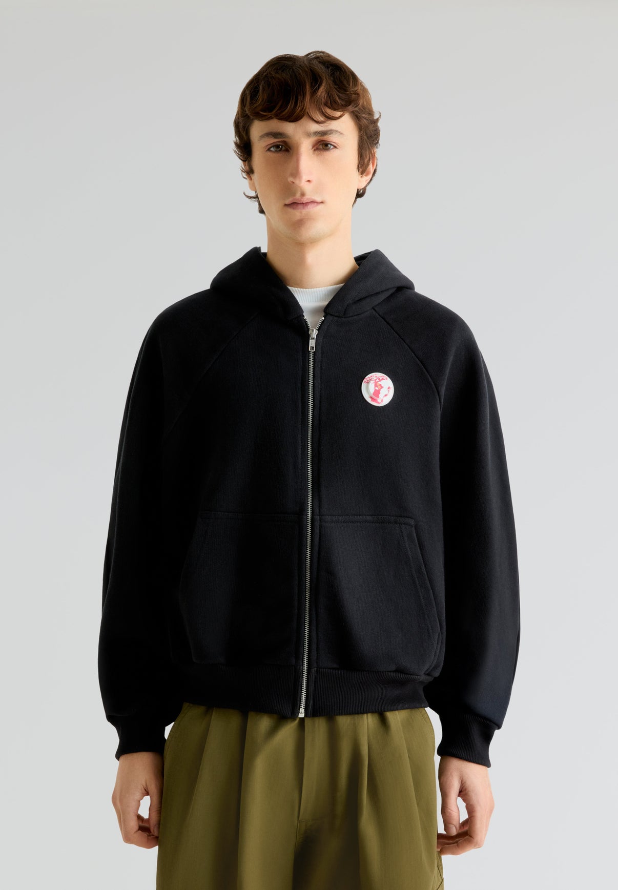 Ssstufff sweatshirt made from French terry fabric with a short reglan cut and a print on the front and back. Zip closure.