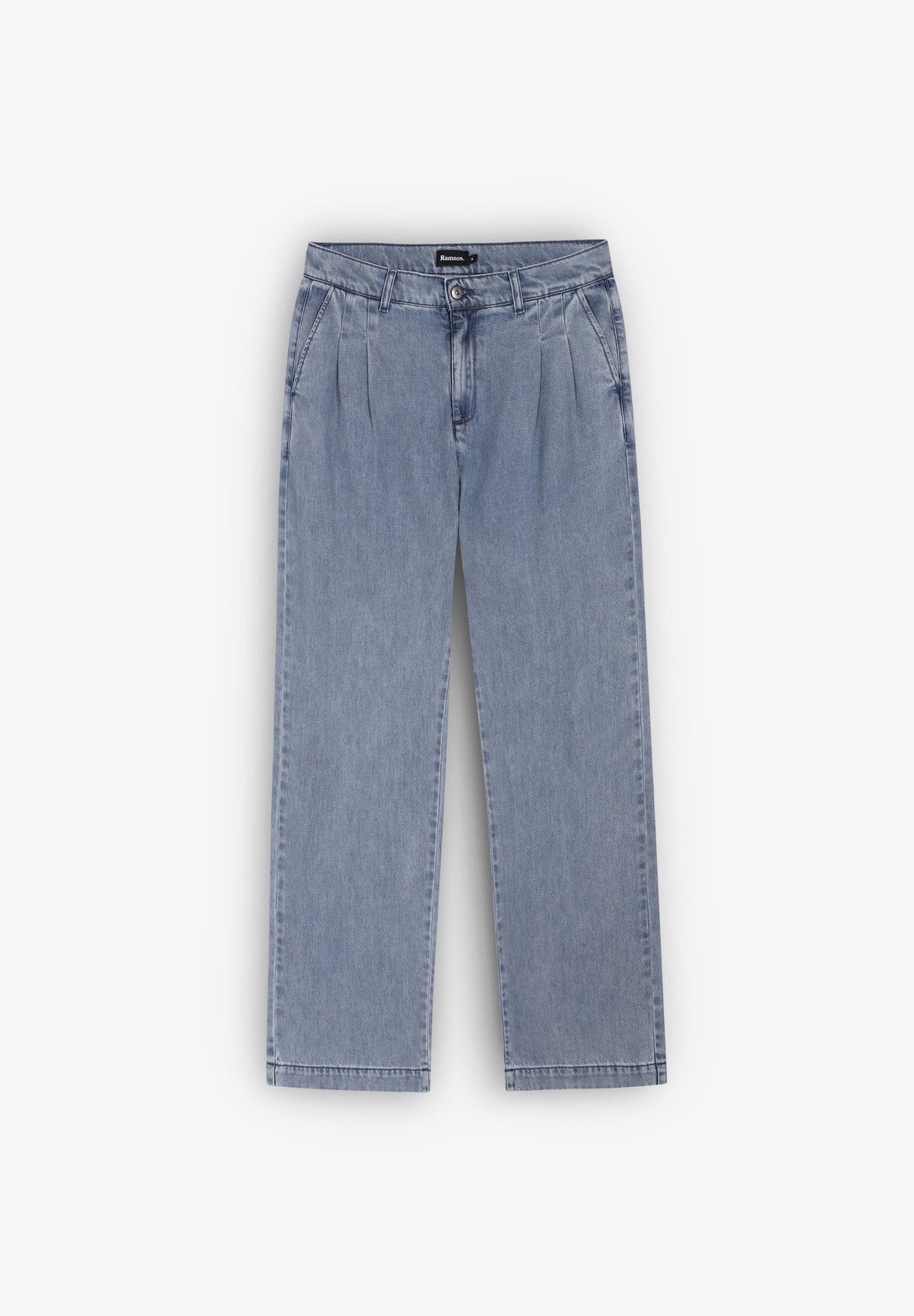 Pantalón vaquero con pinzas Ramsos confeccionado en 100% algodón. Cierre con botón, dos bolsillos laterales delanteros y detalle de bolsillos en la parte trasera.
