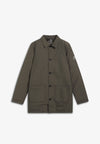 Ecoalf jacket made from 100% recycled polyamide. It features a regular fit and a central front closure with custom snaps. It has front pockets, a shirt collar, branded trims, and an interior label.