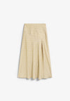 Falda Thinking Mu confeccionada en tejido 100% tencel e inspirada en la cestería y el trabajo artesanal. Presenta un tiro medio, cierre con cremallera invisible lateral, fit loose y detalle de pliegue frontal.