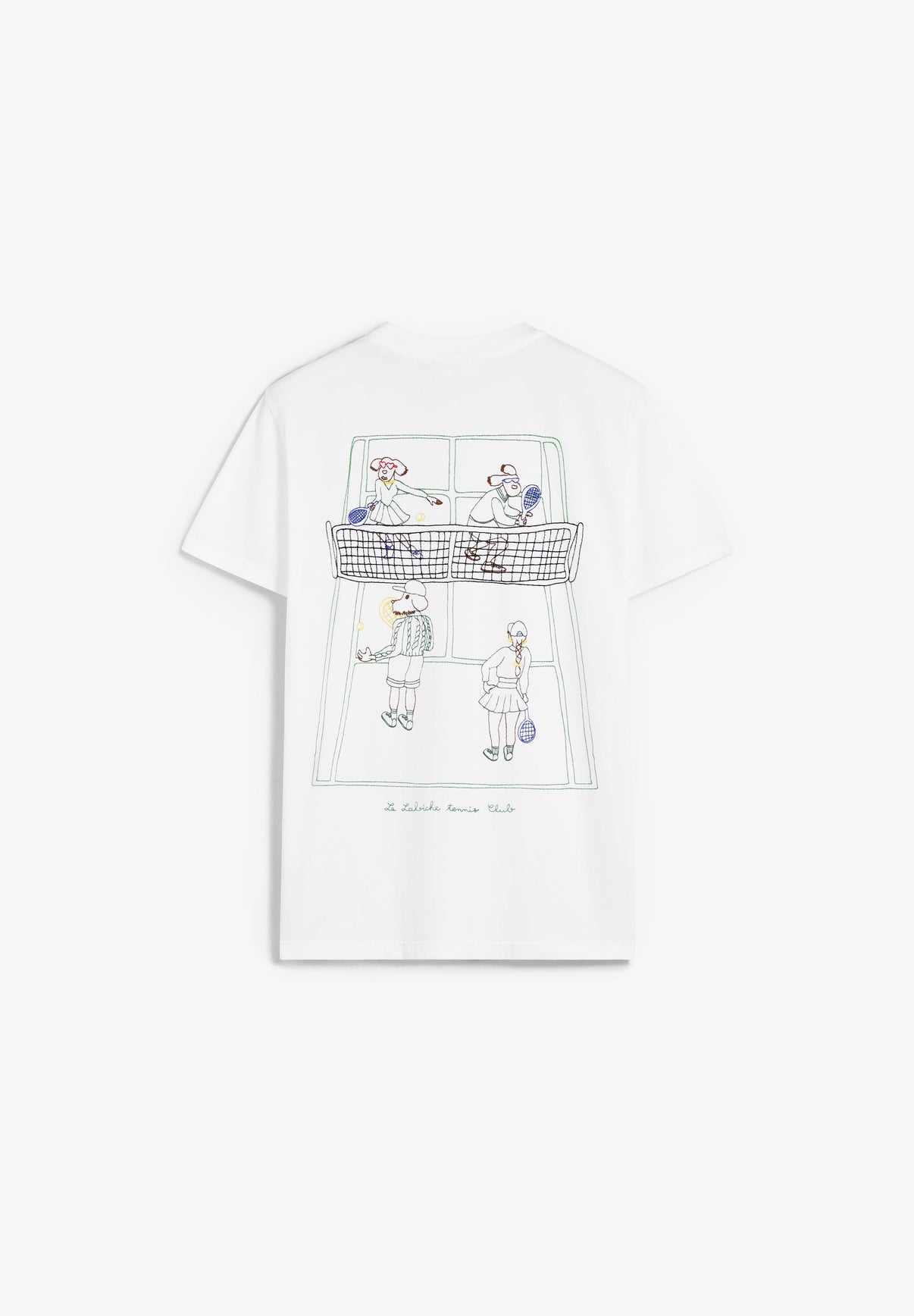 Camiseta Maison Labiche confeccionada en 100% algodón orgánico. Presenta un corte holgado y cuello acanalado. Su bordado ilustra la alegría de los dobles mixtos.