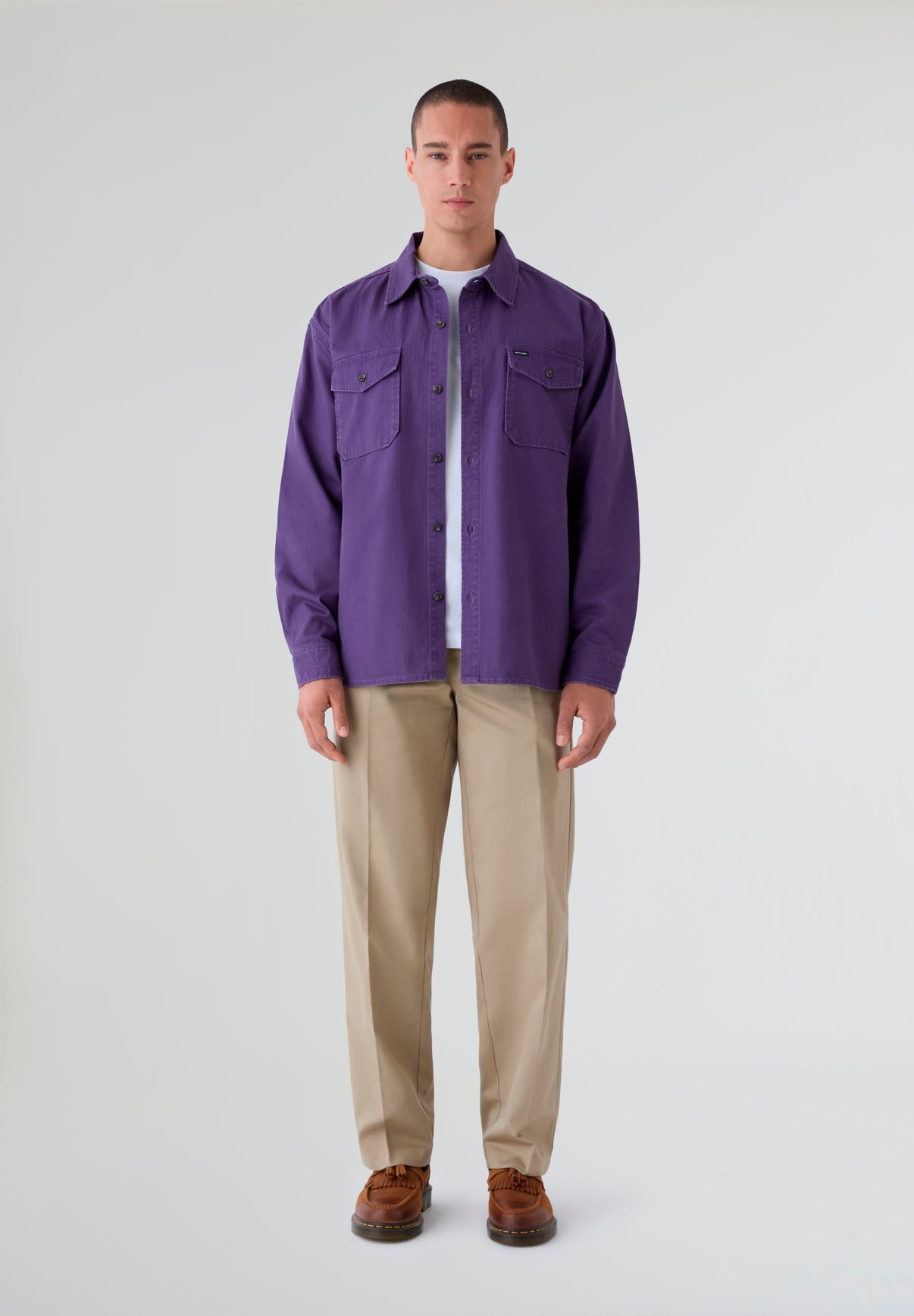Brixton overshirt made from 100% cotton with a straight cut. It features flap pockets on both chests and a durable, long-lasting fabric.