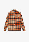 Bdbaggies shirt made of 100% cotton. It features a check print in orange and brown tones and a front pocket with flap and button fastening.
