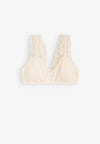The Black Limba bra is made from 90% polyamide and 10% elastane. It features a halter neckline in a floral lace design, cups with removable light padding, and a back closure with two hooks.