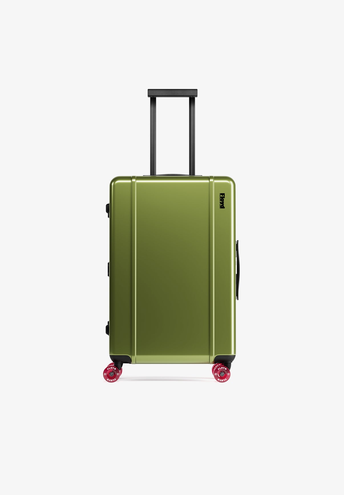 Floyd suitcase made of 100% Makrolon® polycarbonate. It features a 360° skateboard spinner wheel system, aluminium frame construction, integrated 3-digit TSA lock and includes a Floyd dust cover with drawstring and shoe bag.