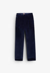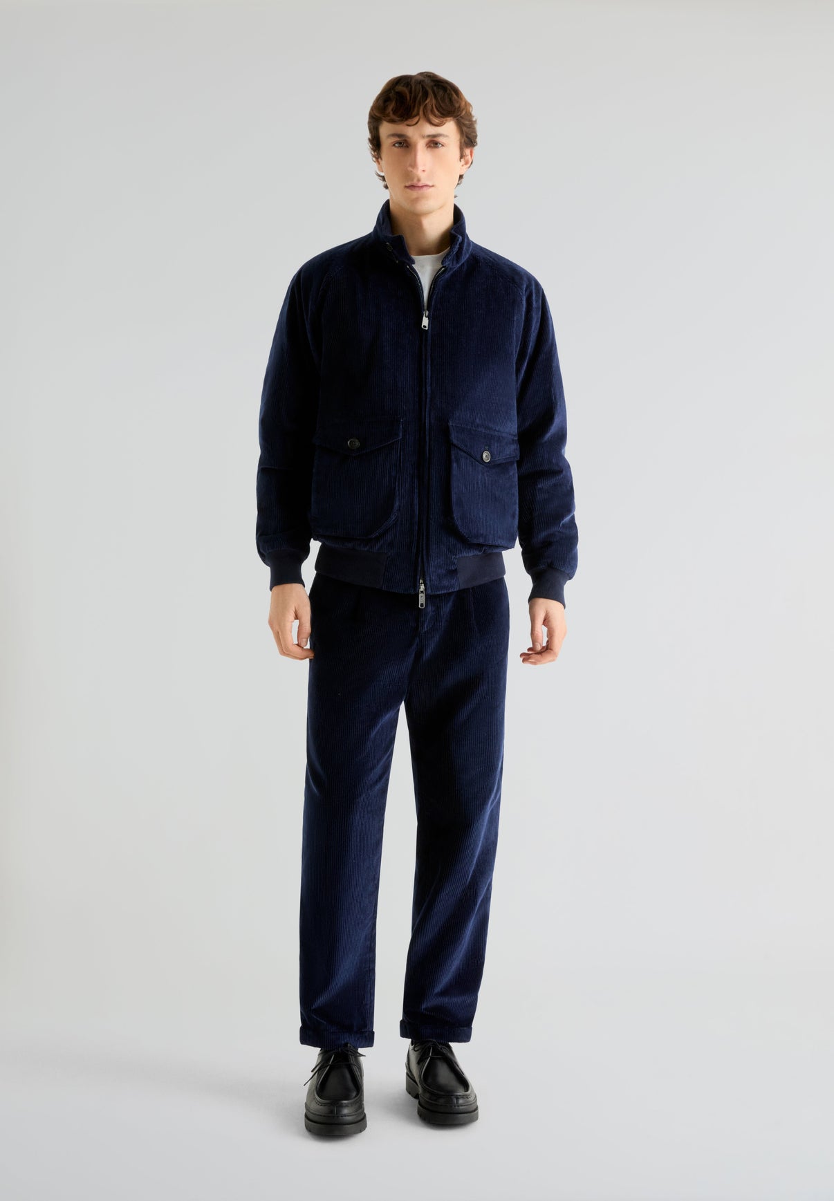 Pantalón de pana Baracuta confeccionado en tejido 100% algodón. Corte holgado, cierre broche y botón. Dobladillo bajo y trabilla cinturón, bolsillos laterales y trasero con botón y detalle pinzas y bordado logo marca.