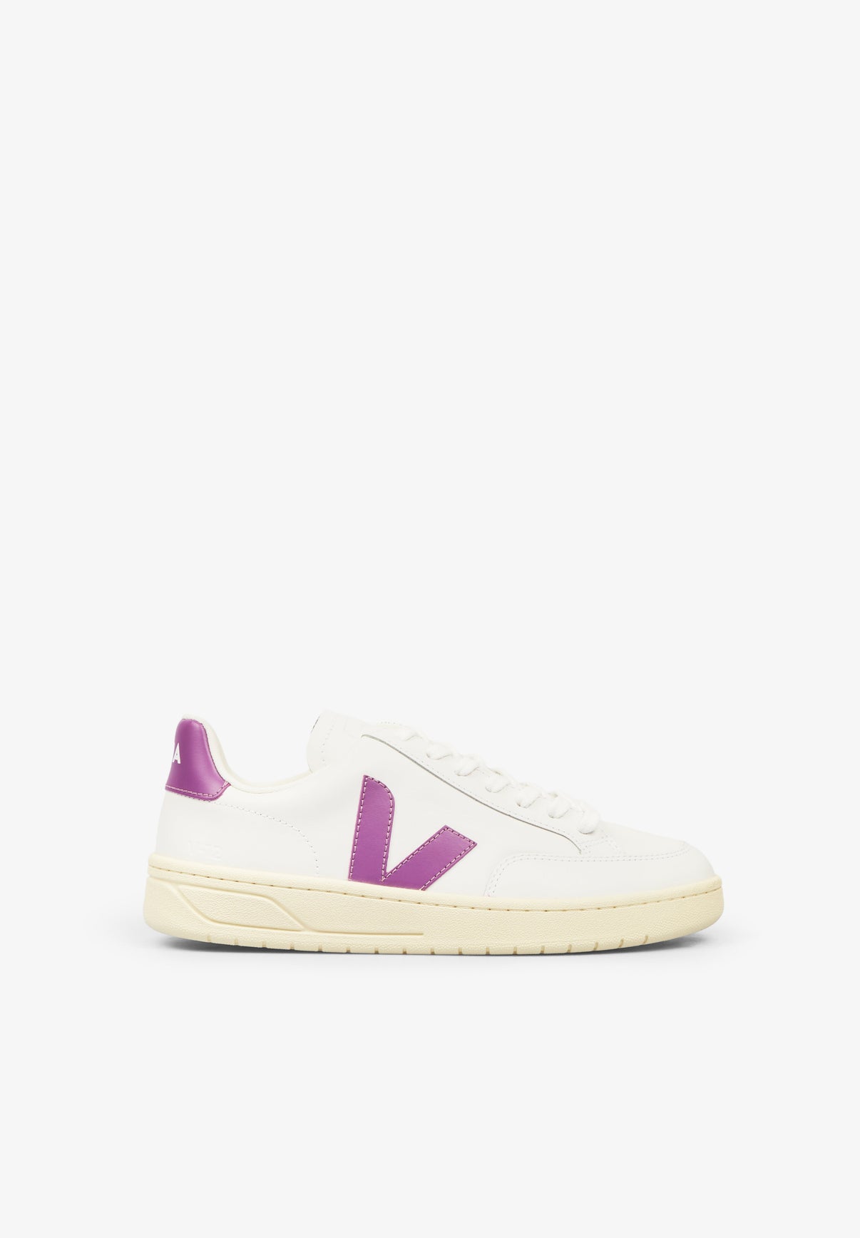 Sneakers Veja V-12 confeccionadas en tejido de cuero con logotipo de caucho en el lateral y parte trasera. Cordones de algodón y plantilla de caucho.