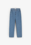 Pantalón Edwin confeccionado en tejido 100% algodón con ajuste holgado, pliegues dobles en la parte delantera y 4 bolsillos.