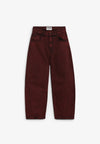 Pantalón vaquero Essentiel confeccionado en 100% algodón orgánico. Combinan cintura alta y ajuste relajado. Cuenta con una pernera estilo barril que queda realzada por una costura lateral exterior sutilmente retorcida. La parte delantera se asegura con cremallera y botón, presenta presillas funcionales, cinco bolsillos y detalle de etiqueta con el logo en la parte trasera de la cintura.