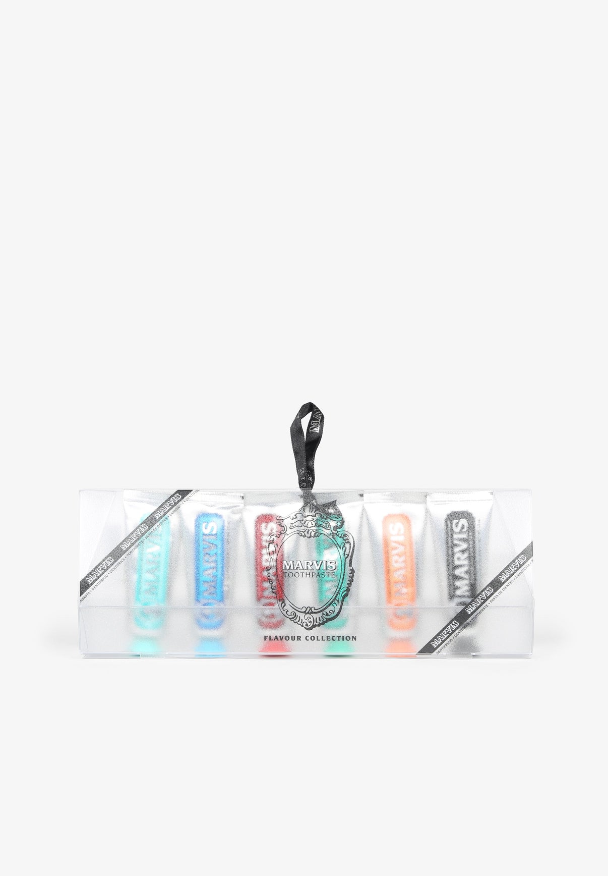 Estuche 6 sabores de pasta de dientes Marvis. En su interior encontraremos 6 pastas dentífricas cada una de ellas elaborada con un sabor distinto y con el diseño propio de la marca.