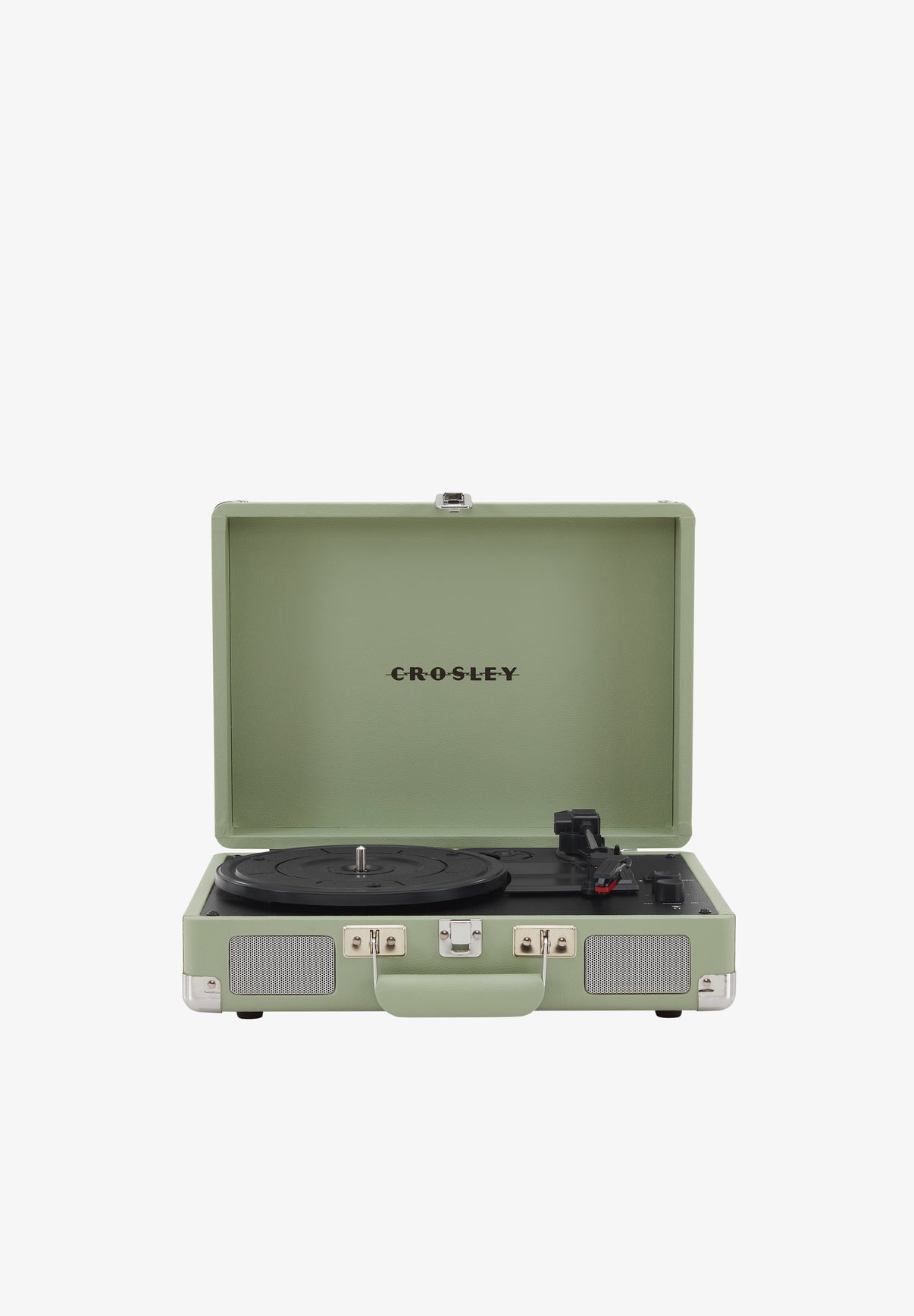 Tocadiscos Crosley que incluye tecnología Bluetooth para sincronizar con otros dispositivos.