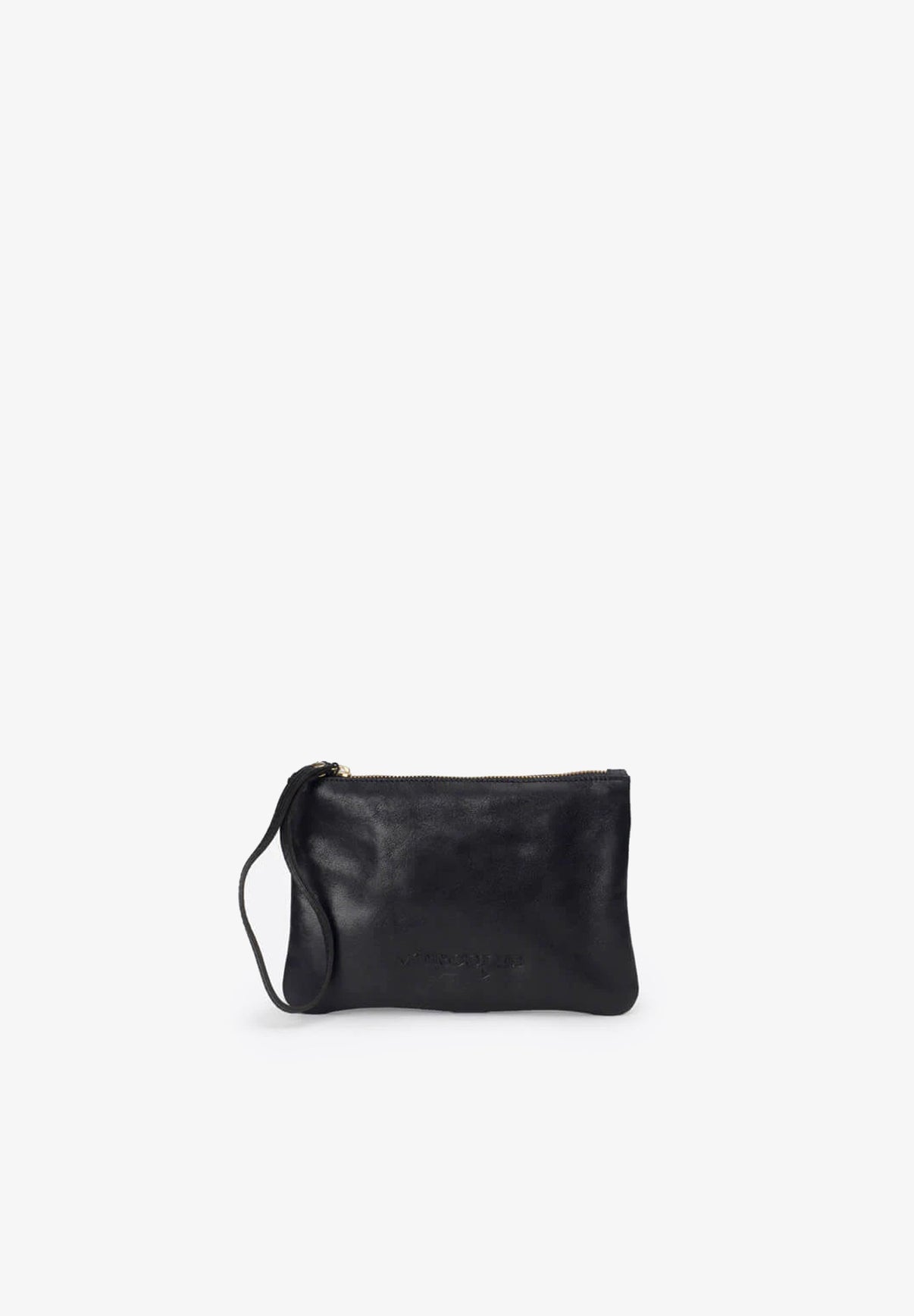 Cartera Mercules confeccionada en 100% piel. Cuenta con asa para la muñeca, forro interno de algodón y cierre con cremallera. Logo Mercules grabado en el frente.