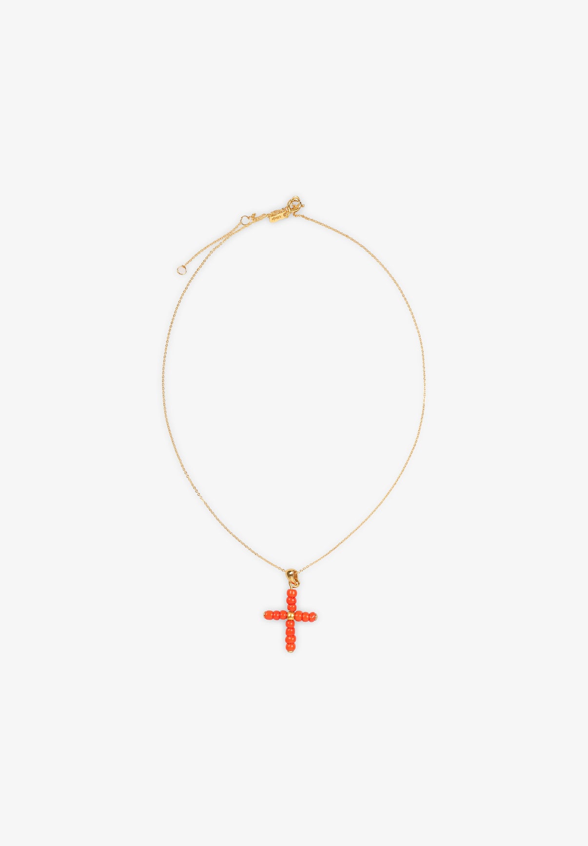 • Cruz con piedras color coral de 2,7cm x 2 cm.