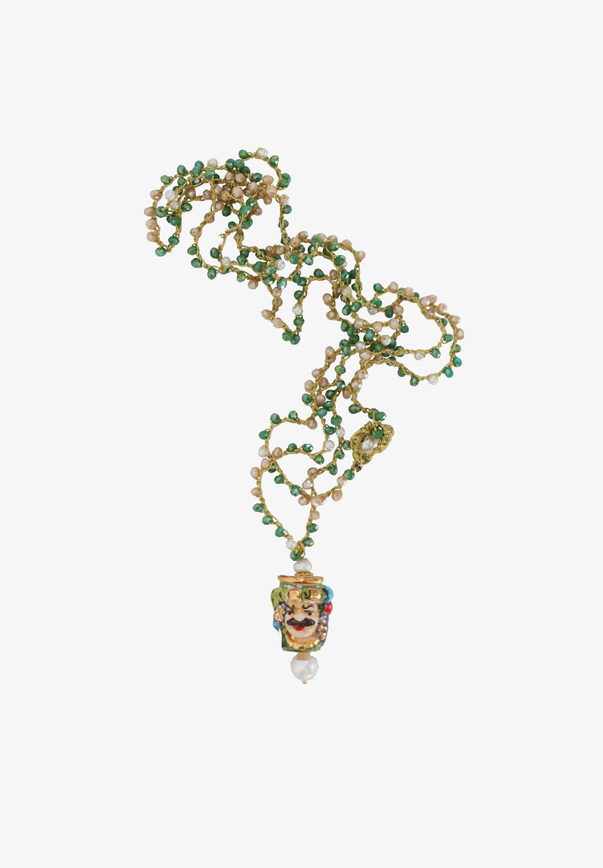 • Detalle perla y cabeza "Testa di moro" fabricada en cerámica Siciliana de Caltagirone.