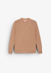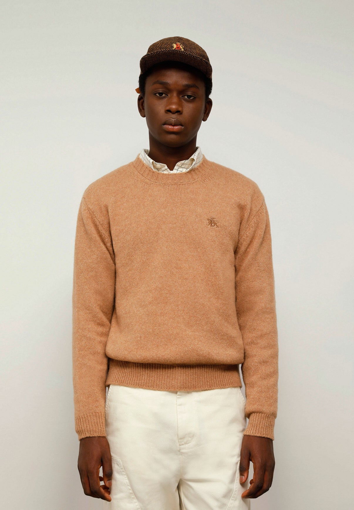 Jersey Baracuta confeccionado en tejido mezcla lana virgen y poliamida. Presenta un corte estándar, cuello redondo. hombros caídos, bajo, puños y cuello acanalados y detalle logo bordado en el pecho.
