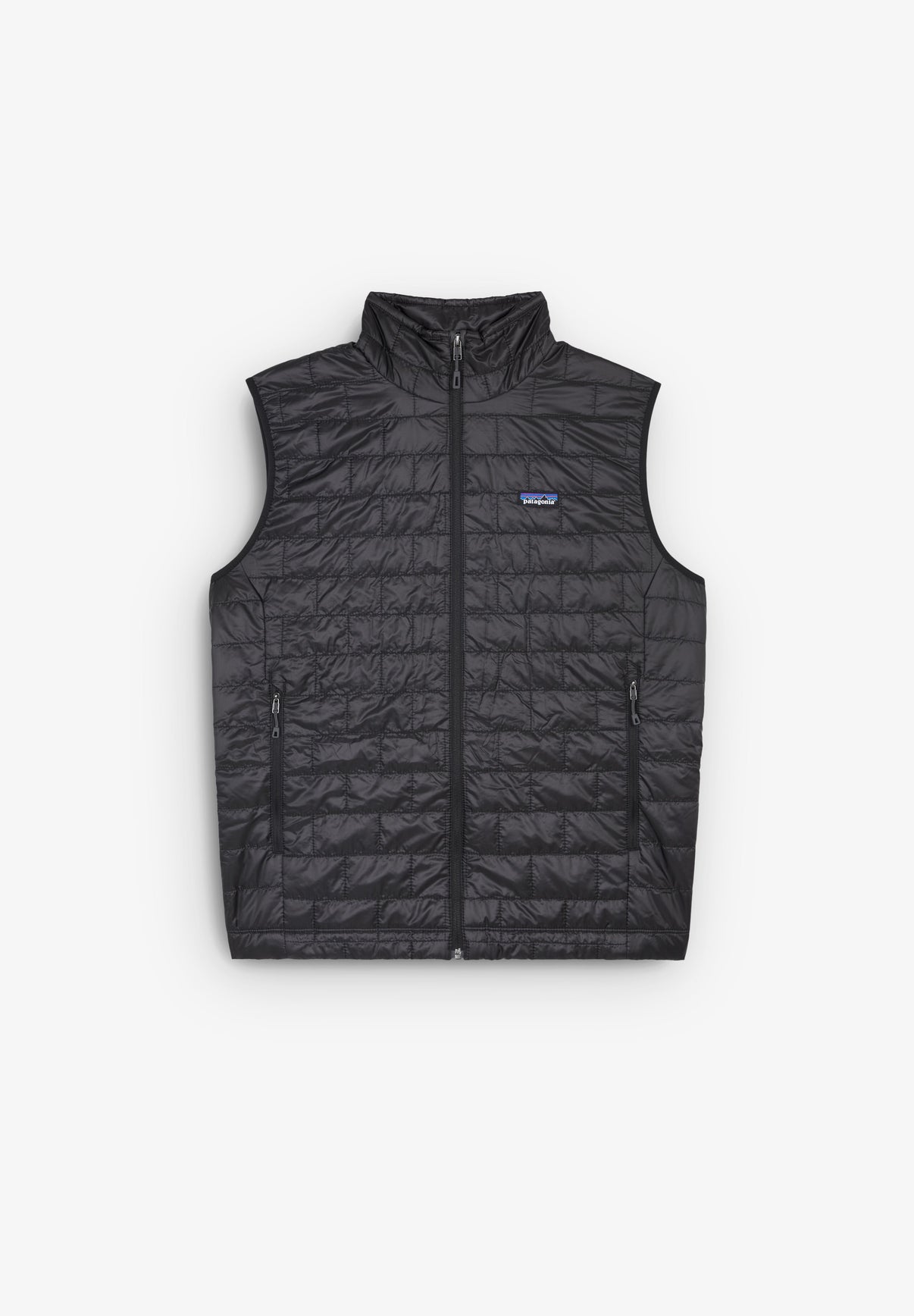 Chaleco Patagonia confeccionado en tejido 100% poliéster reciclado. Resistente al viento y al agua. Cuenta con un cuello alto y cierre de cremallera, bajo con ajuste elástico, bolsillos calentadores con cremallera y bolsillo interior. Posibilidad de empacarse y detalle etiqueta logo marca.