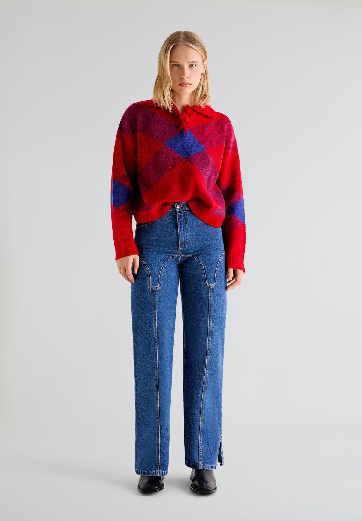 Pantalón Laagam confeccionado en tejido 100% algodón de tiro alto y cierre de cremallera y botón. Bolsillos delanteros, bajo con aberturas y etiqueta logo marca.