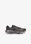 Zapatillas Hoka confeccionadas en materiales reciclados de alta calidad con tecnología Meta-Rocker y monomalla y suela Vibram® Mega-Grip 5 mm con surcos. Detalle trabilla trasera para mejor colocación.