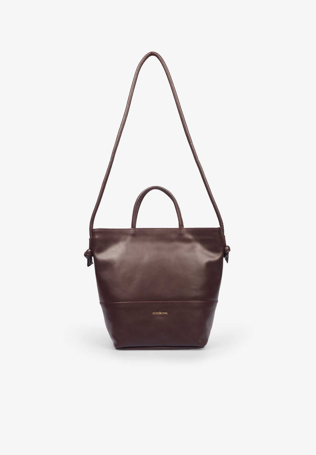 Bolso Mint&Rose confeccionado en piel e interior de lino. Producción artesanal hecha en España por maestros en el tratamiento del cuero. Presenta doble asa y silueta minimalista, costuras decorativas, lujados a tono, asa larga ajustable con enganche en nudo, asa corta de mano y cierre en cremallera dorada. El interior es de lino, tiene un bolsillo y bandeja inferior para que no pierda su forma.