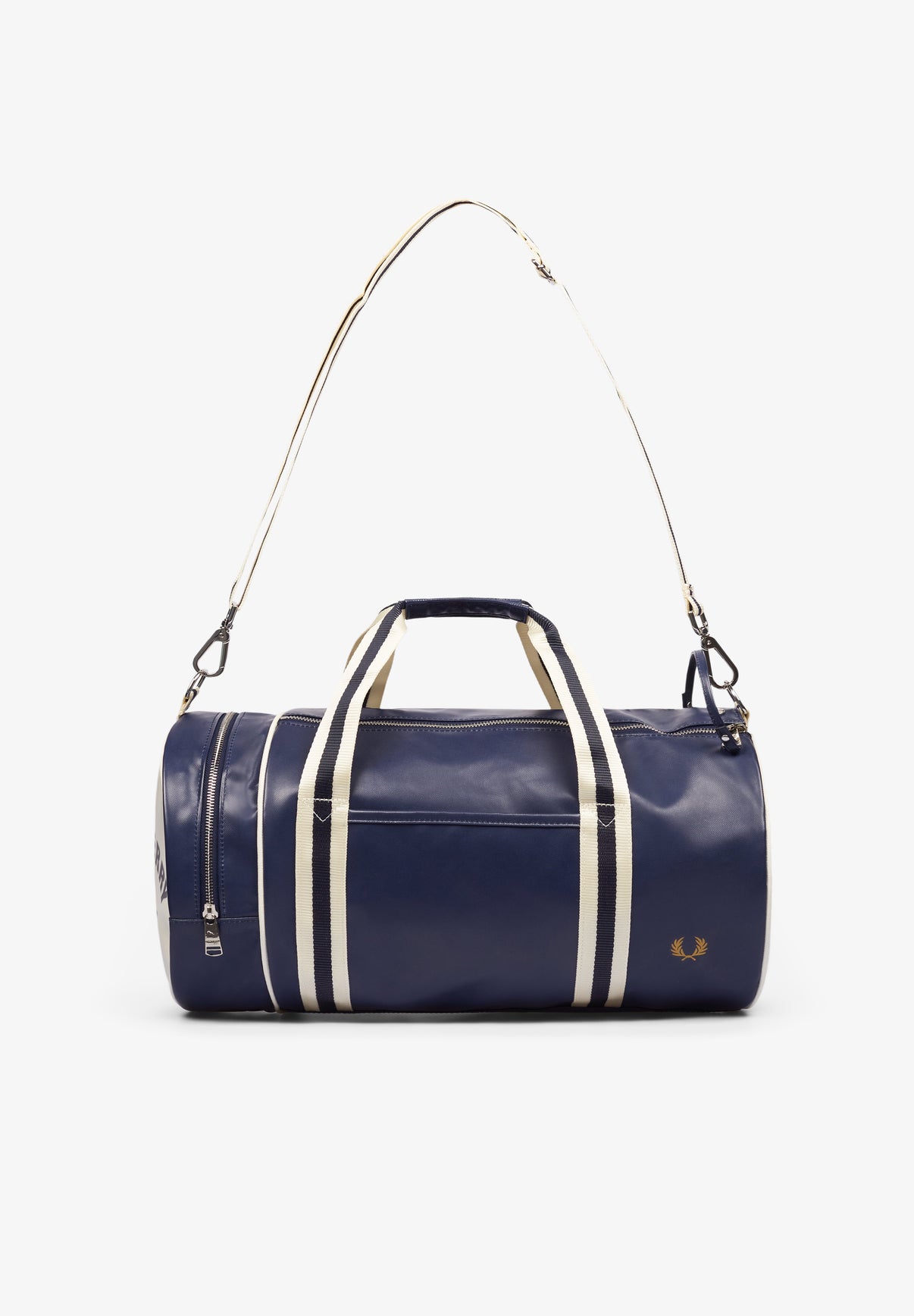 Bolsa Fred Perry confeccionada en poliéster reciclado. Cuenta con detalles metálicos de color plateado, cierre de doble cremallera y compartimento con cremallera en el extremo, correas tejidas ajustables y ribetes para llevar la bolsa cruzada. Detalle logotipo en los paneles de los extremos y corona de laurel en la parte delantera.