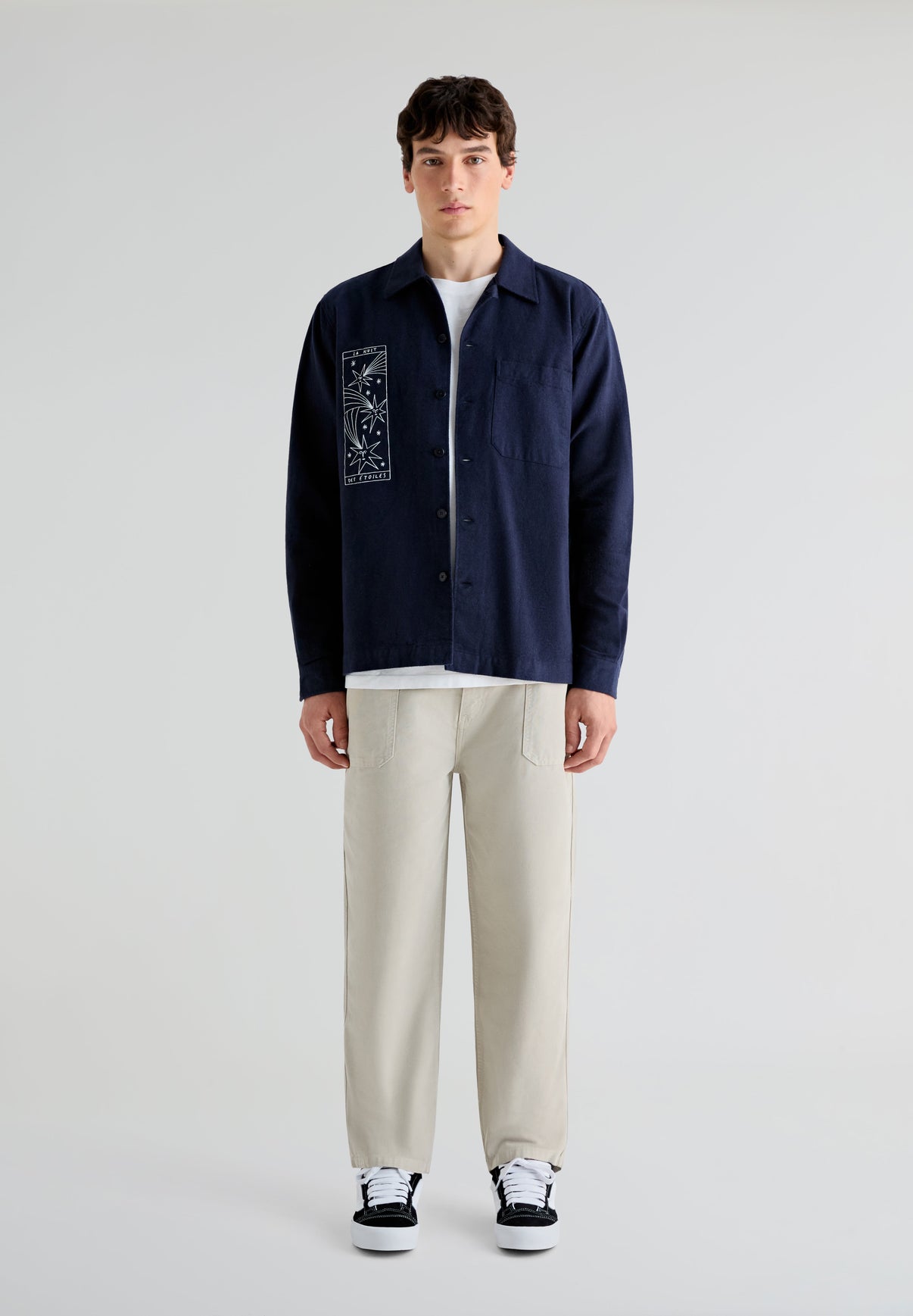 Pantalón Edmmond confeccionado en 100% algodón y corte recto. Presenta tres bolsillos delanteros y dos traseros, con ojales en la cintura para darle un toque distintivo. Acabado con la etiqueta de Edmmond en la parte trasera y detalle bordado.
