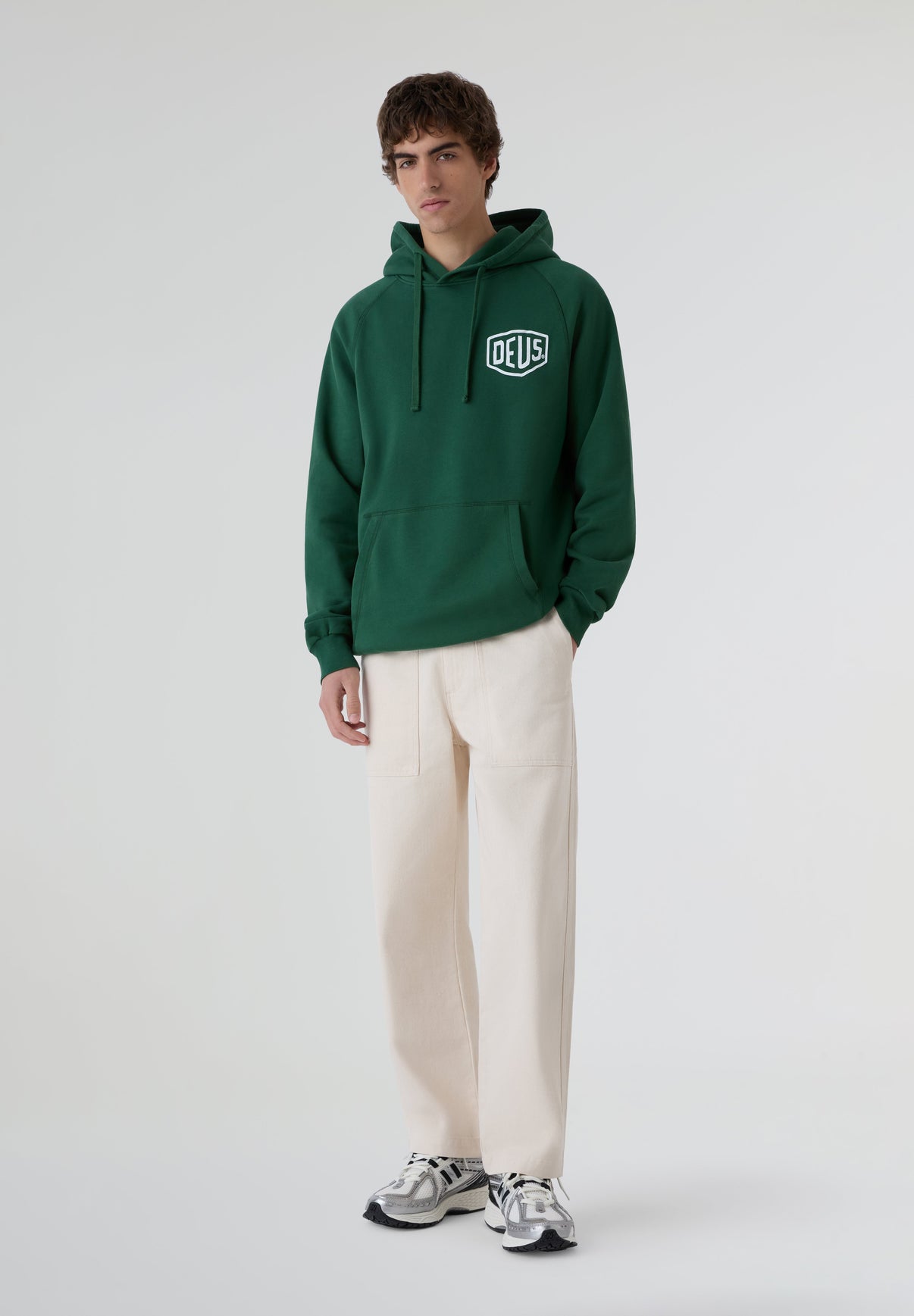 Sudadera Deus con capucha. Confeccionada en tejido de vellón cepillado de algodón orgánico de 380 g. Corte regular con bolsillo canguro y bajos de los puños acanalados.