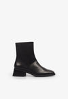 Botas Vagabond confeccionada en cuero negro y un diseño minimalista. Presenta una puntera cuadrada, tacón acampanado de 47mm, cremallera en la parte interior y costuras decorativas.