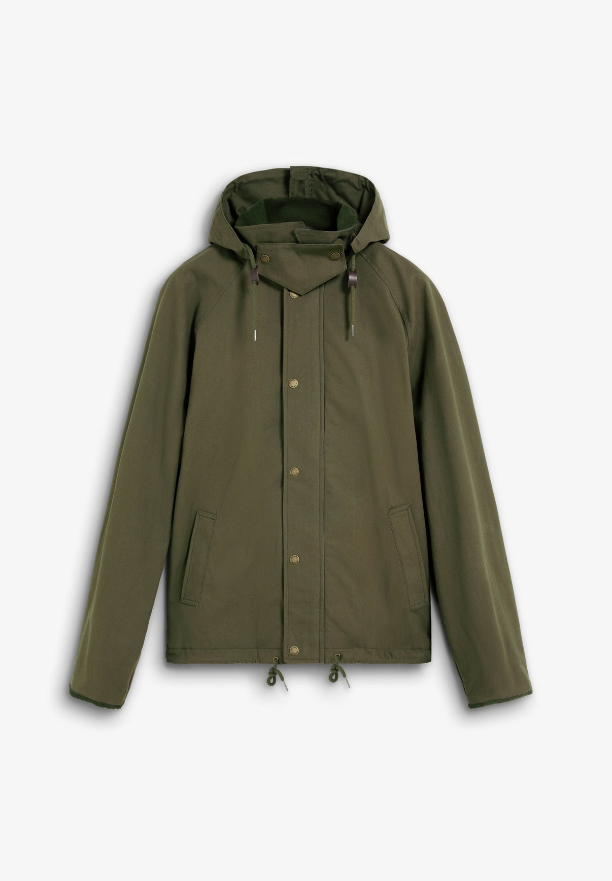 Chaqueta confeccionada en 100% Algodón BCI. Capucha ajustable y desmontable. Cierre con cremallera y botones. Puños interiores de canalé. El vivo de la manga y el cuello están confeccionados en pana. Mangas raglán. Dos bolsillos delanteros. Detalles logotipo en cremallera.