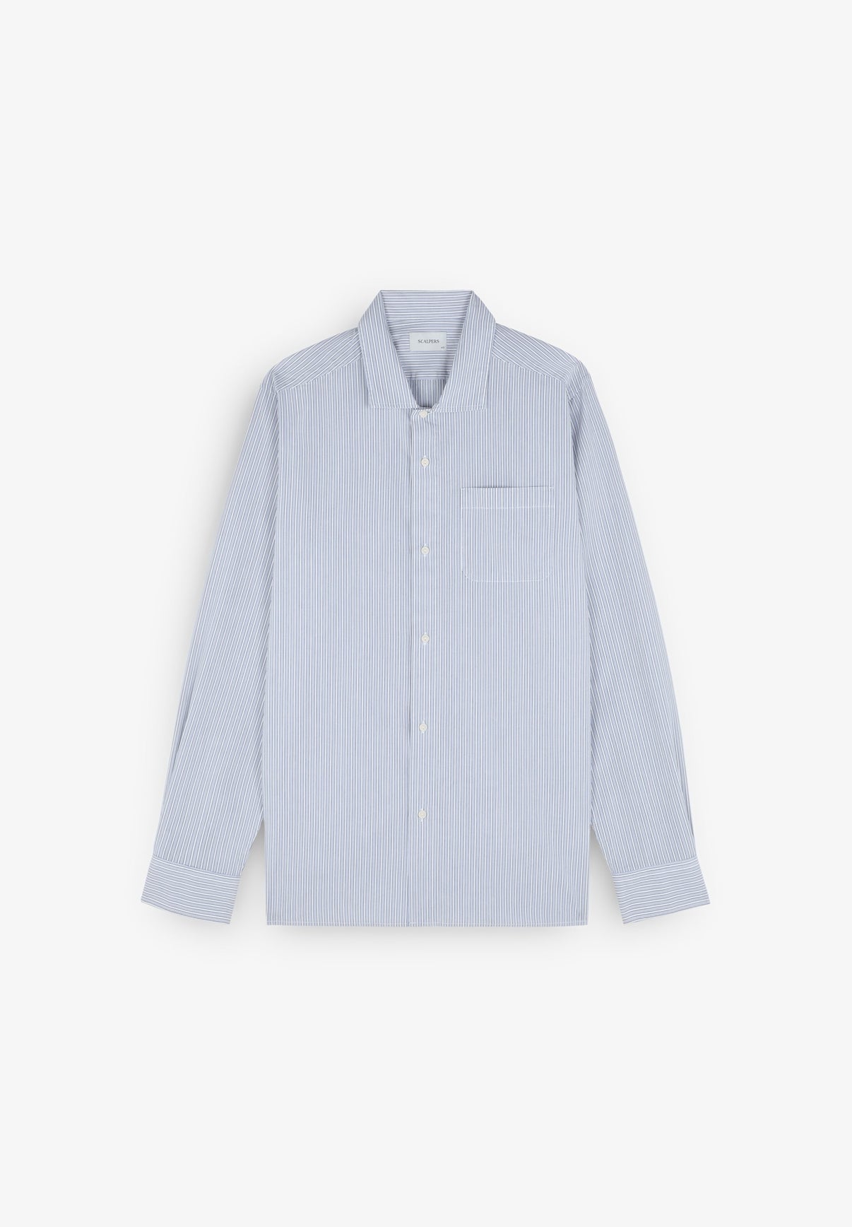 Camisa confeccionada en 100% algodón BCI. Manga larga. Estampado de rayas. Bolsillo frontal en pecho. Detalle calavera bordada a contraste en puño.
