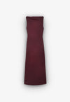Vestido Ramsos confeccionado en tejido 100% algodón en color burdeos. Escote drapeado y abertura trasera.