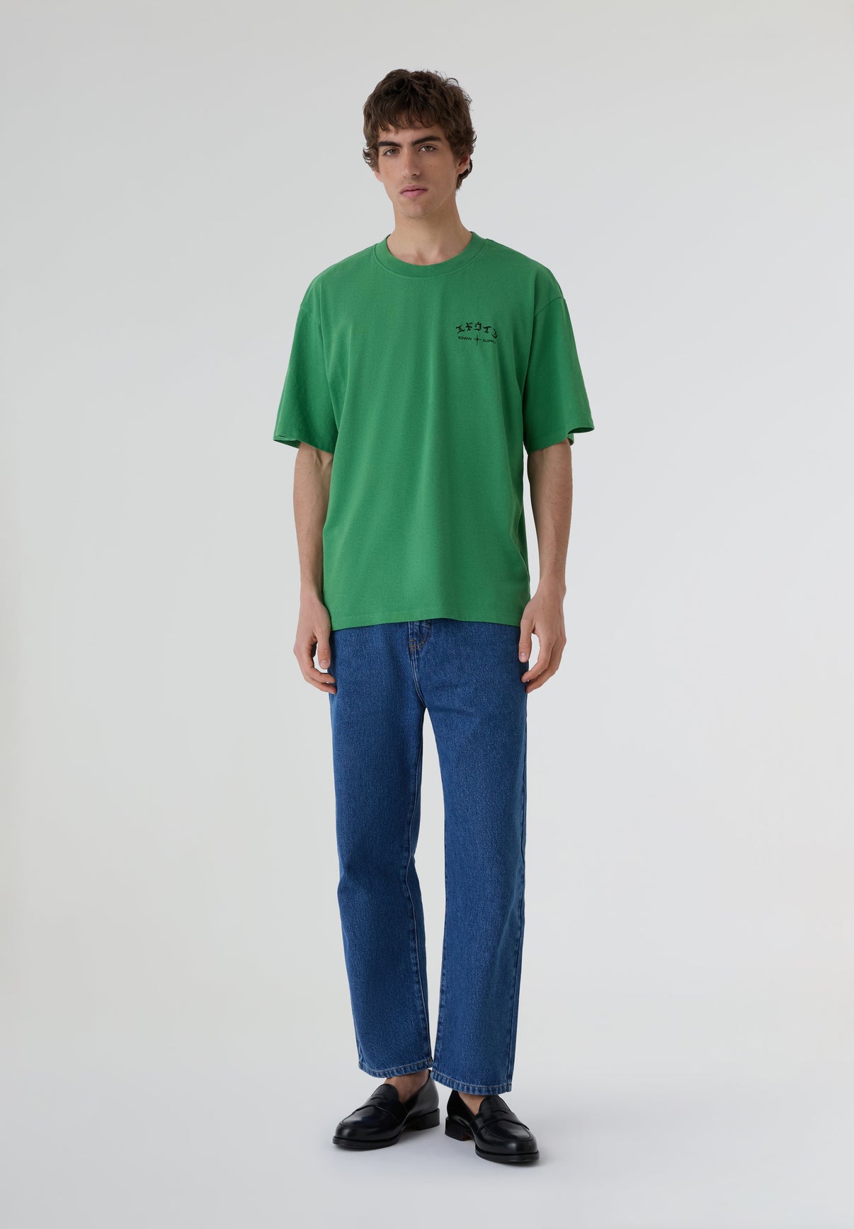 Pantalón denim Edmmond confeccionado en tejido 100% algodón de corte recto, con tres bolsillos delanteros y dos traseros. etiqueta Edmmond en la parte trasera.