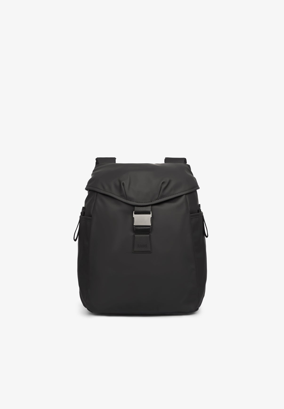 Mochila Rains Valera bucket backpack w3. Confeccionada en tejido de PU con un revestimiento en la parte trasera. Con solapa, hebilla y cierre de cordón. Un compartimento principal y dos bolsillos en la parte trasera. Correa frontal se sujeta mediante mosquetones.