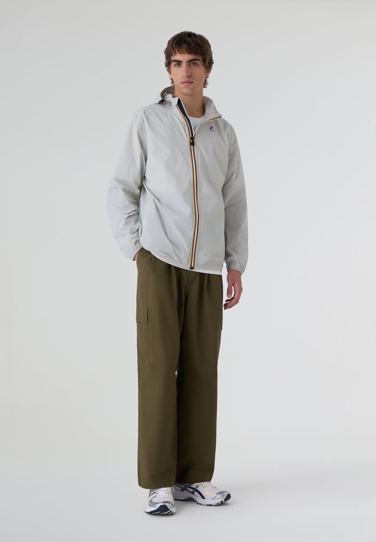 Chaqueta K-Way confeccionada en tejido micro ripstop 4.0 100% reciclado. Resistente, impermeable y transpirable. Con costuras interiores termoselladas para aislamiento de viento y lluvia. Capucha ajustable con cordón y cierre de cremallera. Plegable a tamaño bolsillo.