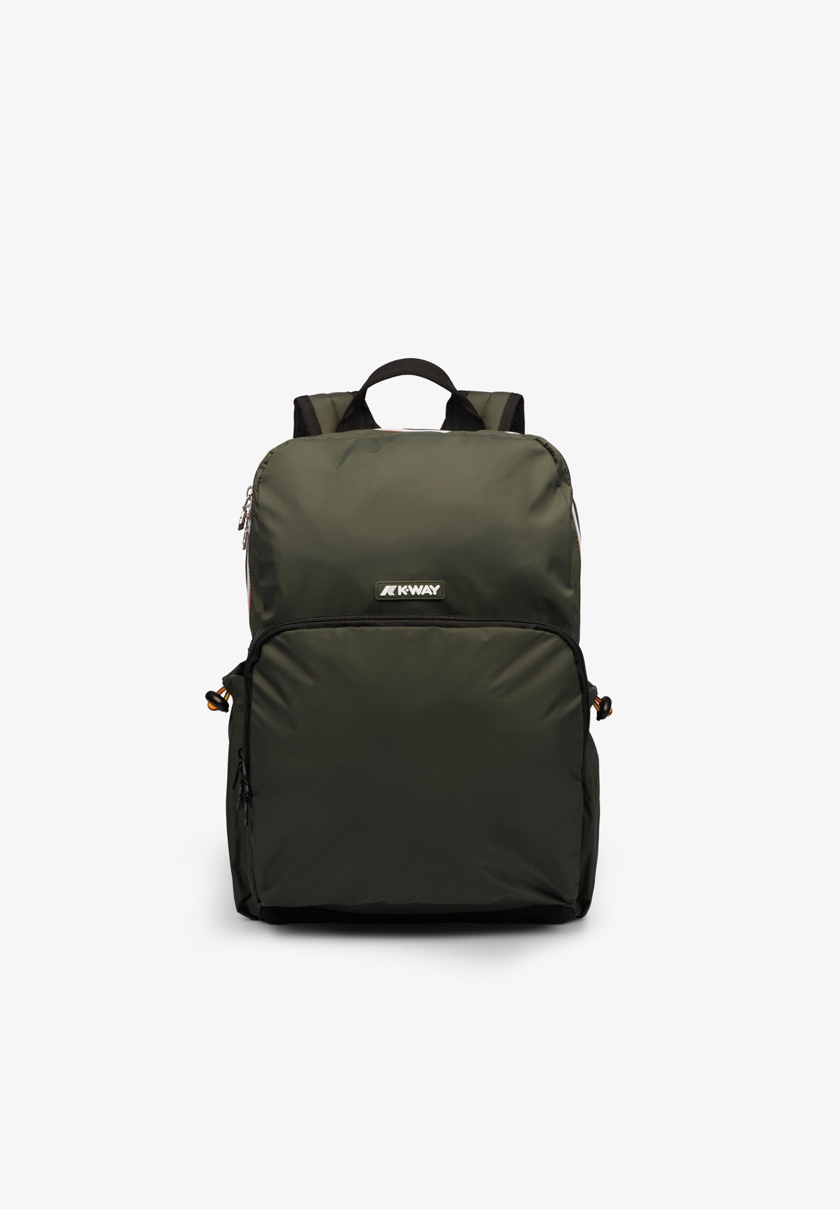 Mochila K-Way confeccionada en tejido 100% nailon en su exterior y 100% poliéster en su interior. Ripstop impermeable, repelente al agua y resistente al viento. Laterales y base reforzados para máxima resistencia. Espalda acolchada, bolsillo frontal con cremallera y dos bolsillos laterales. Funda interior acolchada para portátil