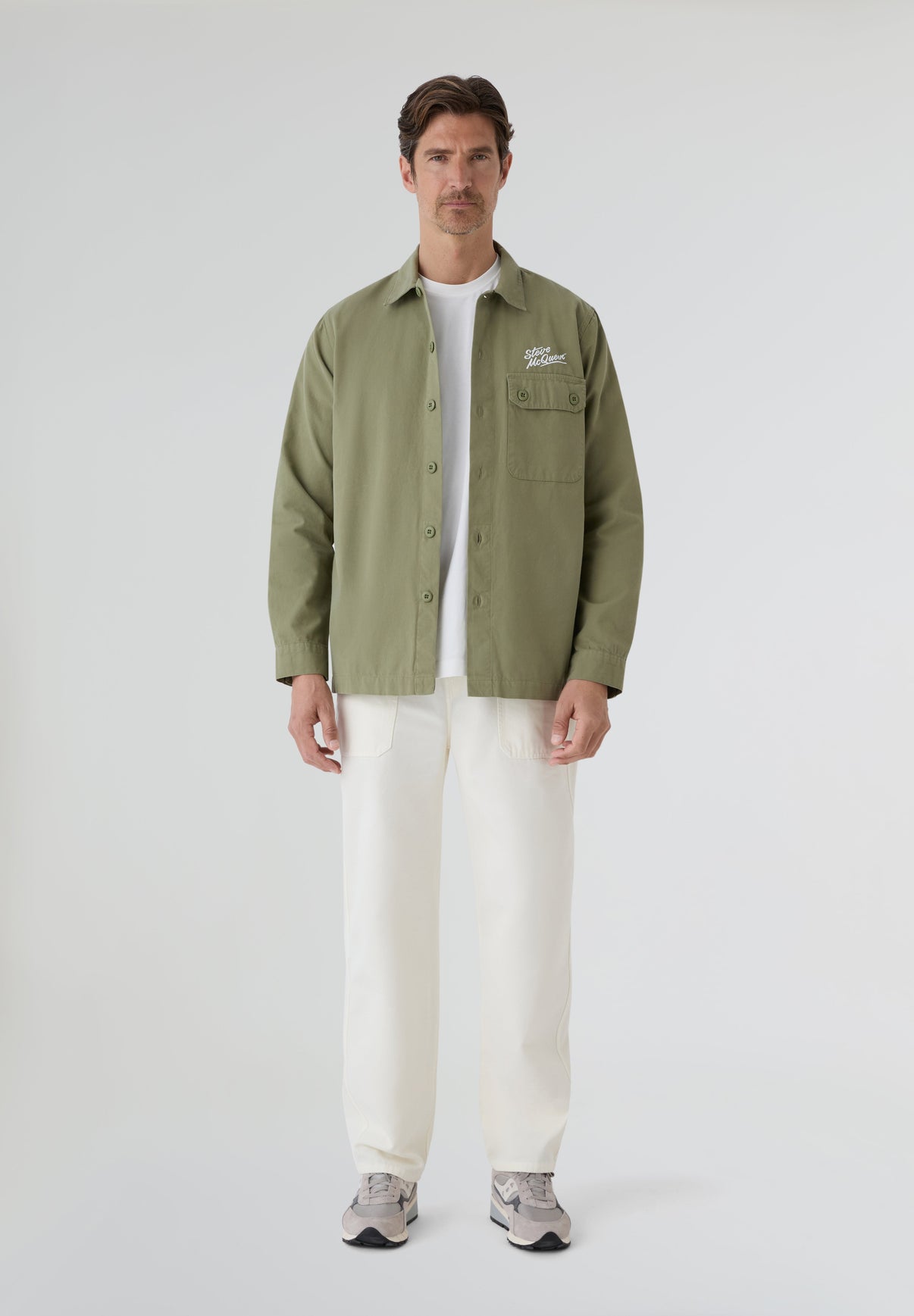 Sobrecamisa Barbour International confeccionada en 100% algodón y lavada a la prenda para un acabado relajado y cómodo. Cuenta con dos bolsillos de parche y un bolsillo en el pecho para un acceso fácil a tus esenciales. Terminada con un bordado contrastado de la firma de Steve McQueen.