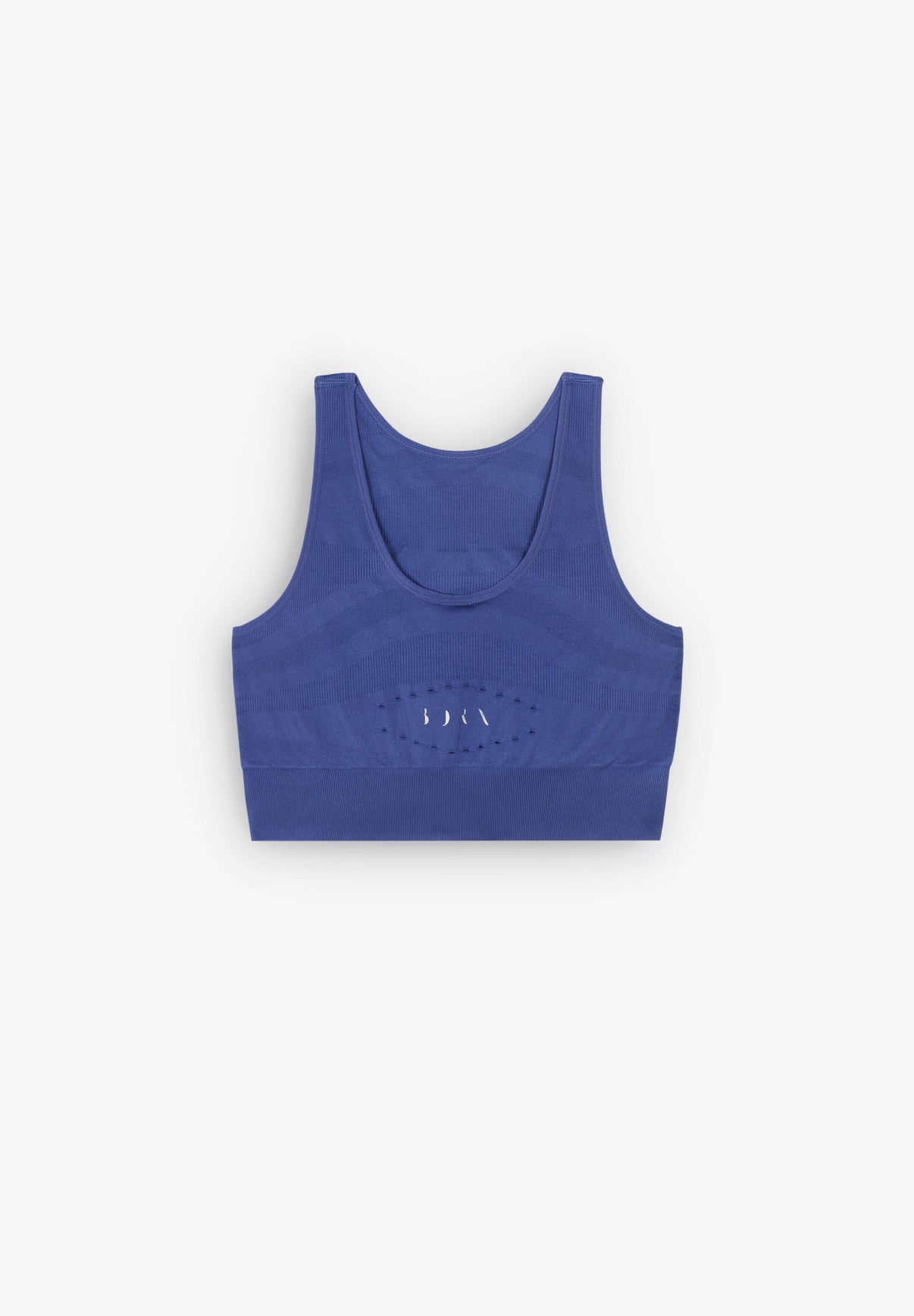 Top cropped seamless de sujeción media alta. tejido “fit_tech” con tecnología 3d. juego de texturas combinando punto liso y punto canalé. micro calados decorativos. espalda atlética para una máxima adaptabilidad y confort. tecnología seamless 3d