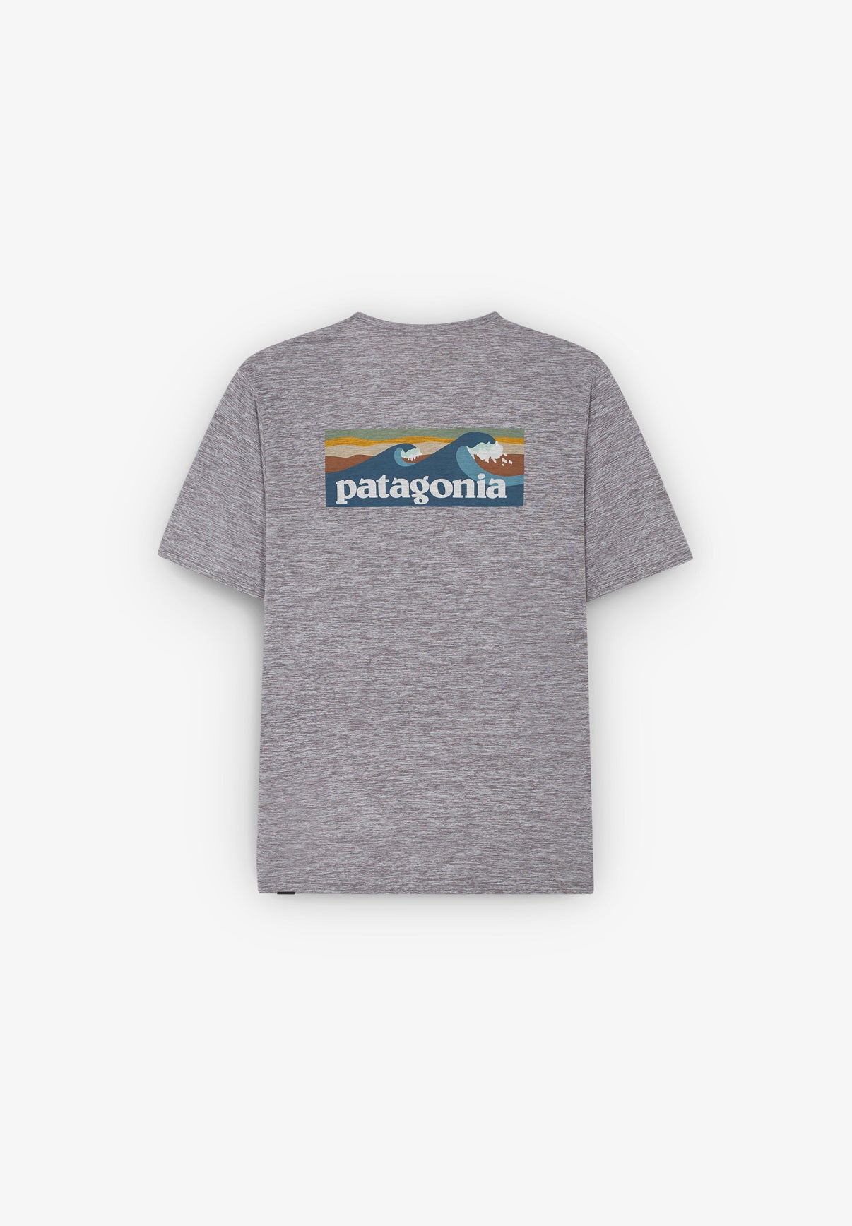 Camiseta Patagonia confeccionada en tejido 100% poliéster. Tela elástica de secado rápido, cuello redondo y mínima cantidad de costuras.