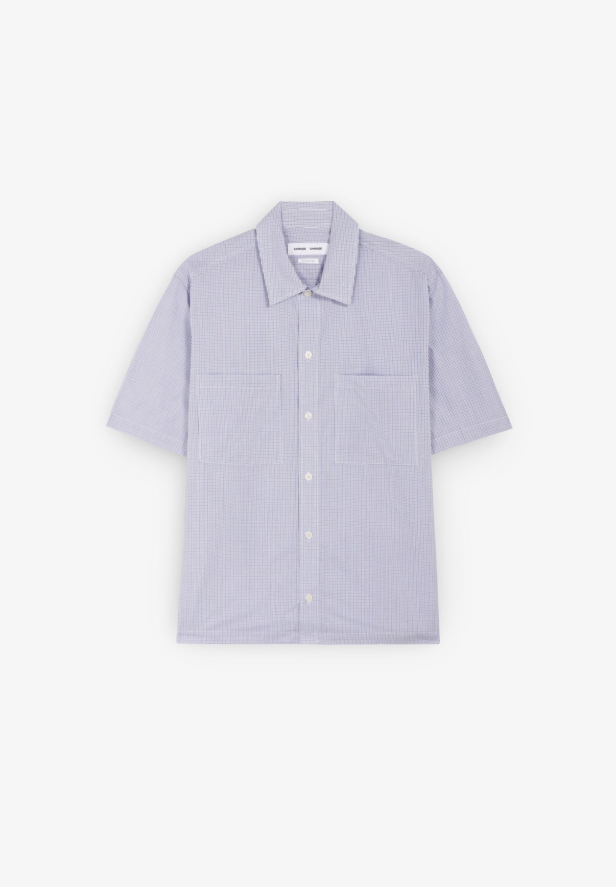 Camisa Samsøe Samsøe confeccionada en algodón, manga corta y diseño de cuadros y doble bolsillo en el pecho.