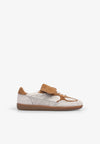Sneakers Alohas confeccionadas en 100% cuero de vaca. Presenta una lengüeta que se pliega sobre la parte delantera, recordando a los clásicos del fútbol. Cuenta con detalles contrastantes en color camel y están diseñadas en una silueta de corte bajo que descansa sobre suelas de goma. Detalles de costuras visibles y logotipo grabado en lengüeta y los laterales.