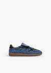 Sneakers Alohas confeccionadas en 100% cuero de vaca. Presenta una lengüeta que se pliega sobre la parte delantera, recordando a los clásicos del fútbol. Cuenta con ribetes contrastantes en azul oscuro y están diseñadas en una silueta de corte bajo que descansa sobre suelas de goma. Detalles de costuras visibles y logotipo grabado en lengüeta y los laterales.