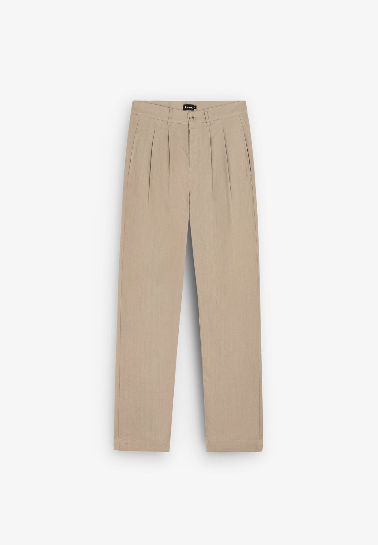 Pantalón de pinzas Ramsos confeccionado en 100% lino. Cierre con botón y detalle en la parte trasera en tono gris.
