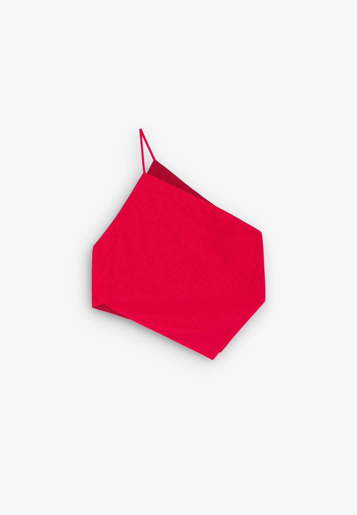Top asimétrico Ramsos confeccionado en 100% lino, con una silueta trapezoidal y un solo tirante.