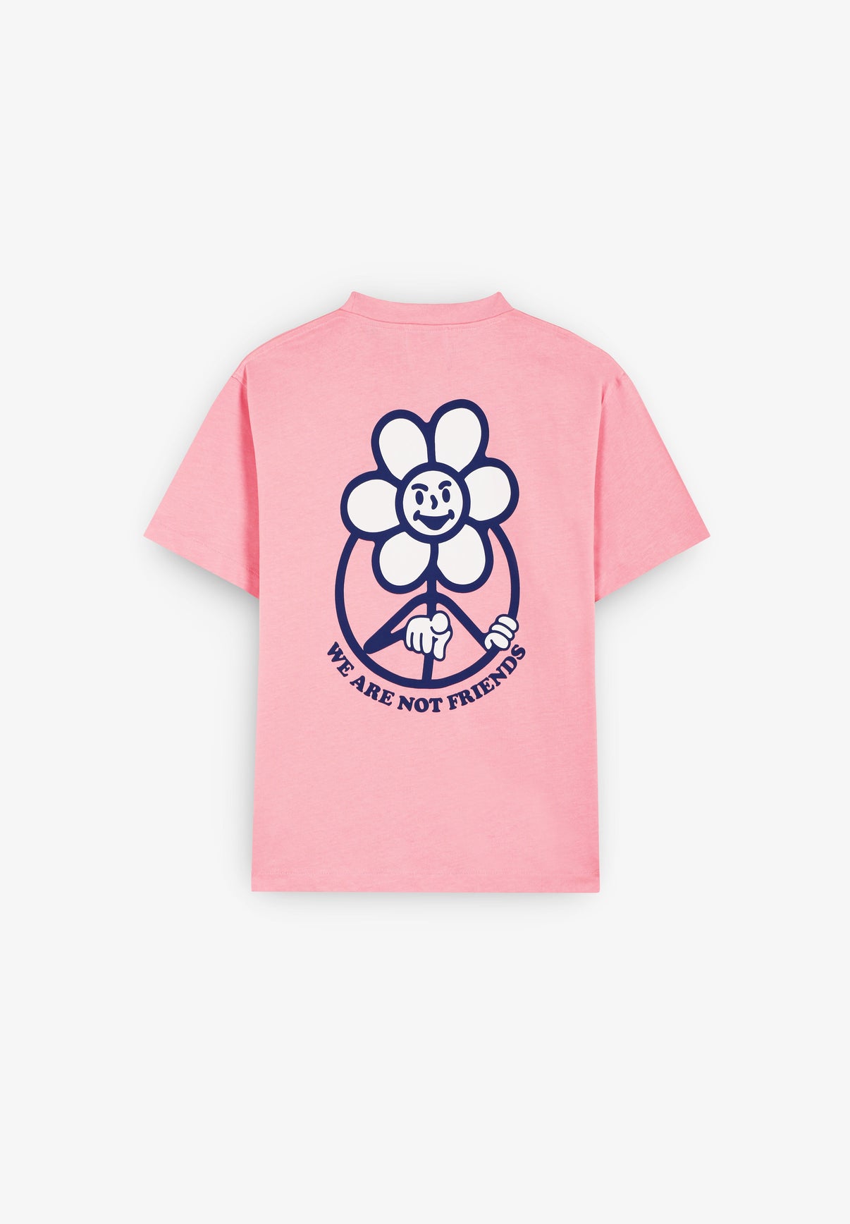 Camiseta We Are Not Friends confeccionada en 100% algodón. Presenta un corte clásico y un llamativo estampado serigrafiado en la parte delantera y trasera.
