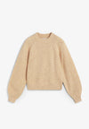 Jersey Bellerose confeccionado en 80% lana y 20% poliamida. Presenta un ajuste regular, cuello redondo, mangas raglán con sutiles costuras de cable, escote, puños y dobladillo acanalados y mangas globo con detalles de costura en los puños.