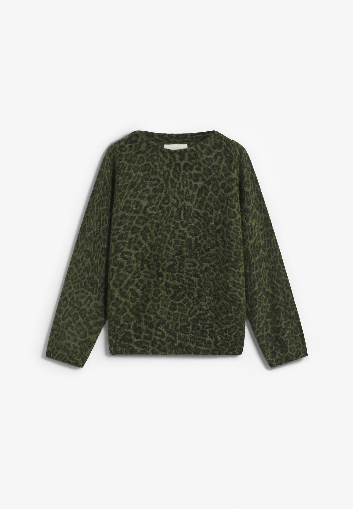 Jersey Bellerose confeccionado en 60% poliamida y 40% angora. Presenta un ajuste extragrande, escota redondo, mangas voluminosas y estampado de leopardo por todas partes.