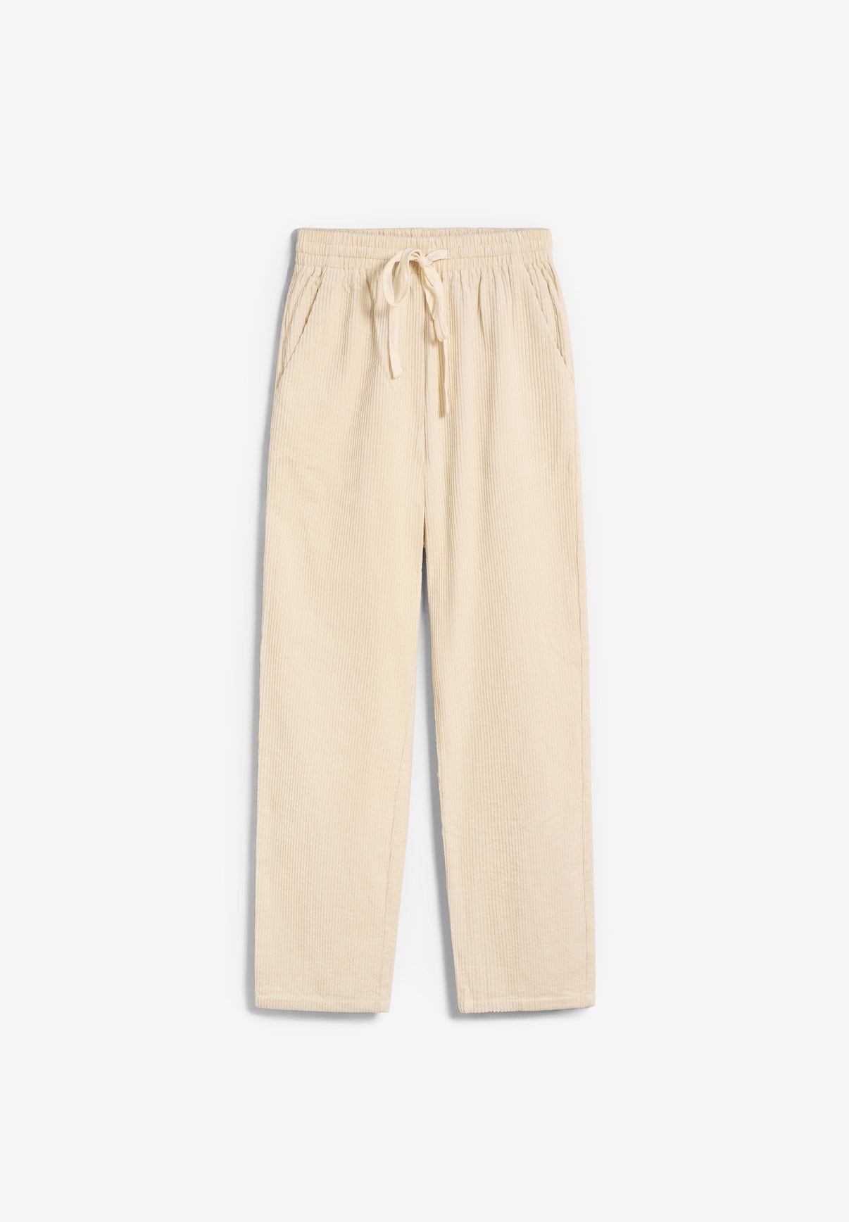 Pantalón Grace & Mila confeccionado en 100% algodón, con un tejido de terciopelo que les confiere un tacto suave y agradable. Presentan un tiro medio y cinturilla elástica y ajustable.