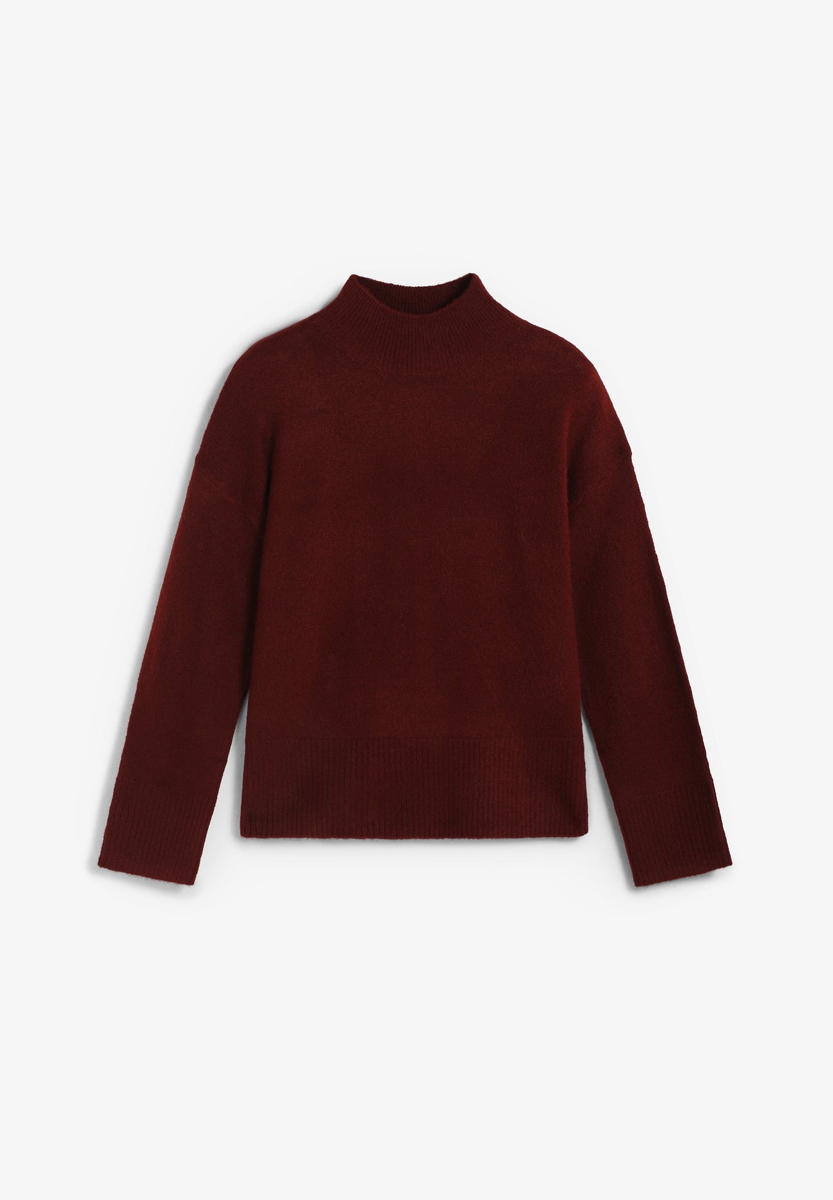 Jersey Grace & Mila confeccionado en 68% acrílico, 12% poliéster, 11% nailon, 6% lana y 3% elastano. Presenta mangas largas y anchas y un corte holgado que crea una silueta relajada y escote chimenea, que es menos ceñido y tan envolvente como el cuello alto.