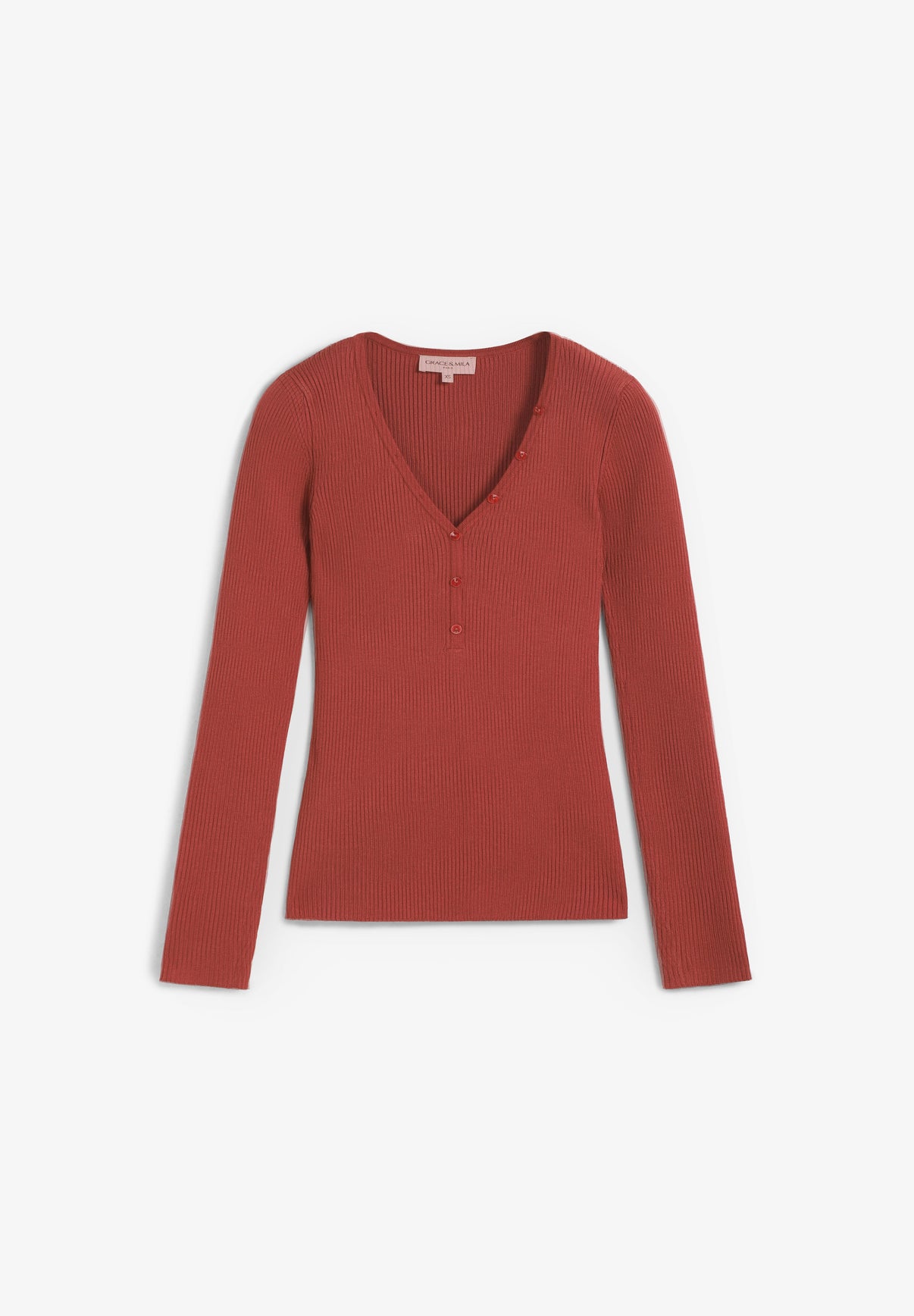 Jersey Grace & Mila confeccionado en 72% viscosa y 28% poliéster. Presenta un corte ajustado de manga larga, creando una silueta estilizada y cómoda. Cuello en V.