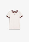 Camiseta Grace & Mila confeccionada en 92% algodón y 8% elastano. Presenta manga corta, inspiración retro y monograma G&M bordado en la parte delantera. Ribetes de colores contrastantes en el cuello y las mangas.